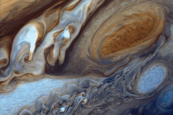 Image of Jupiter’s Great Red Spot, taken by the Voyager 1 space probe during its flyby on March 5, 1979, and re-processed on November 6, 1998. Credit: NASA/JPL
